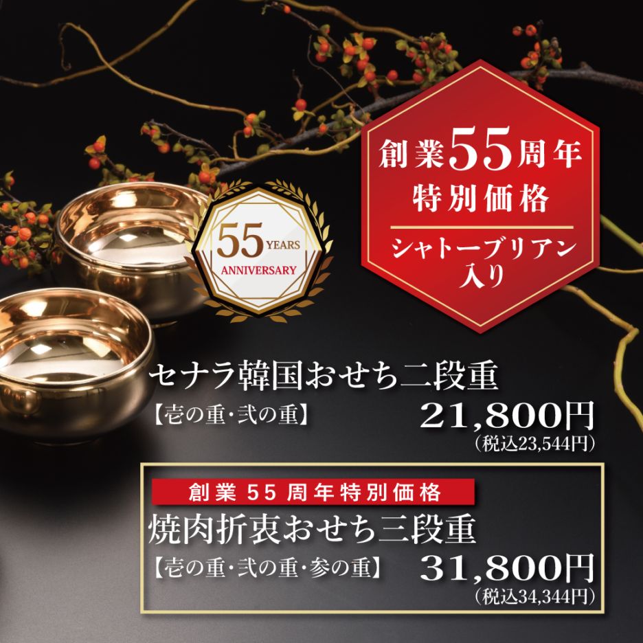 職人の手作りによる韓国宮廷料理とともに、新年の門出にふさわしいおせちです。価格も感謝の特別価格でご提供いたします。